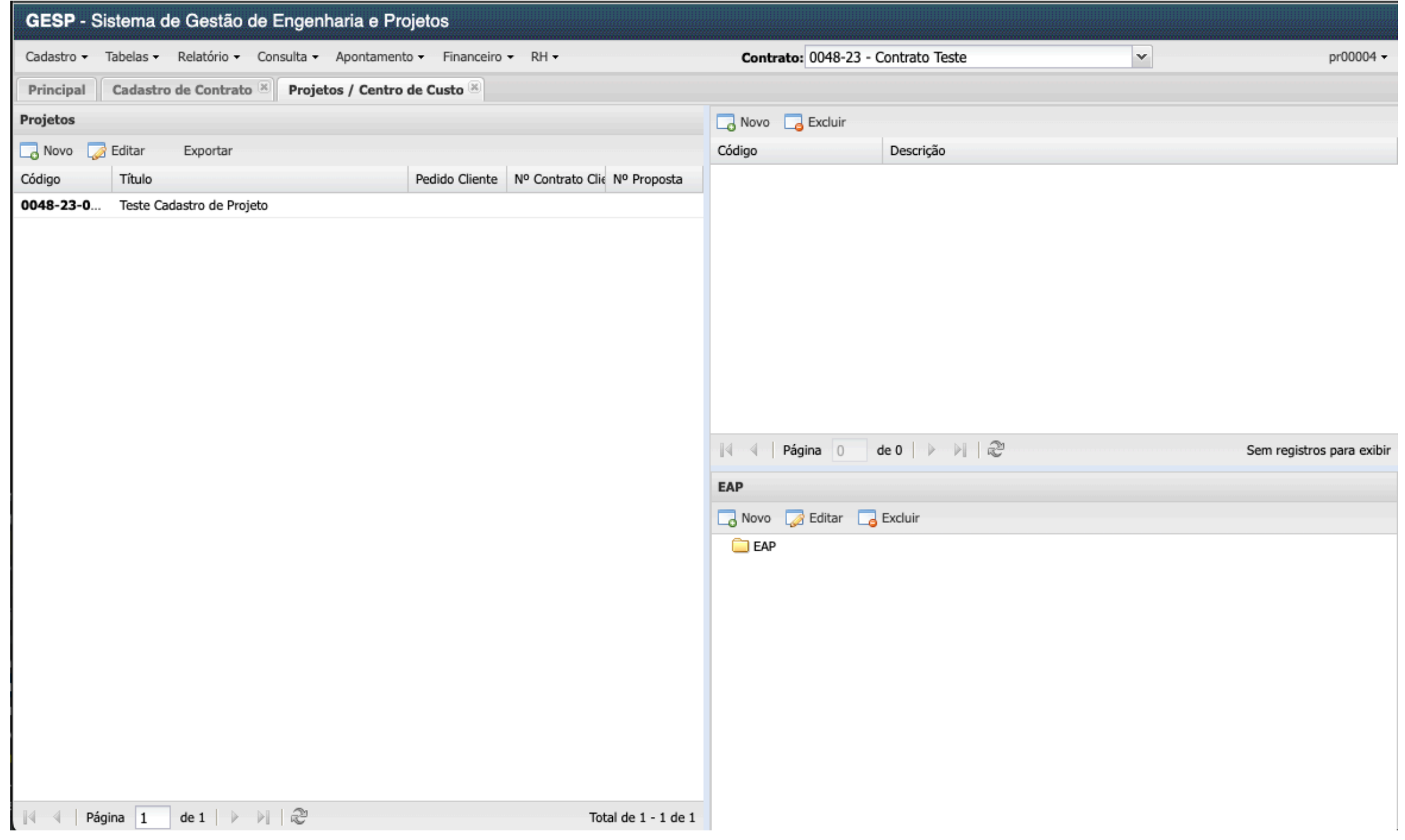 todos os contratos cadastrados, então clique no botão Novo, que será exibido o formulário de cadastro de