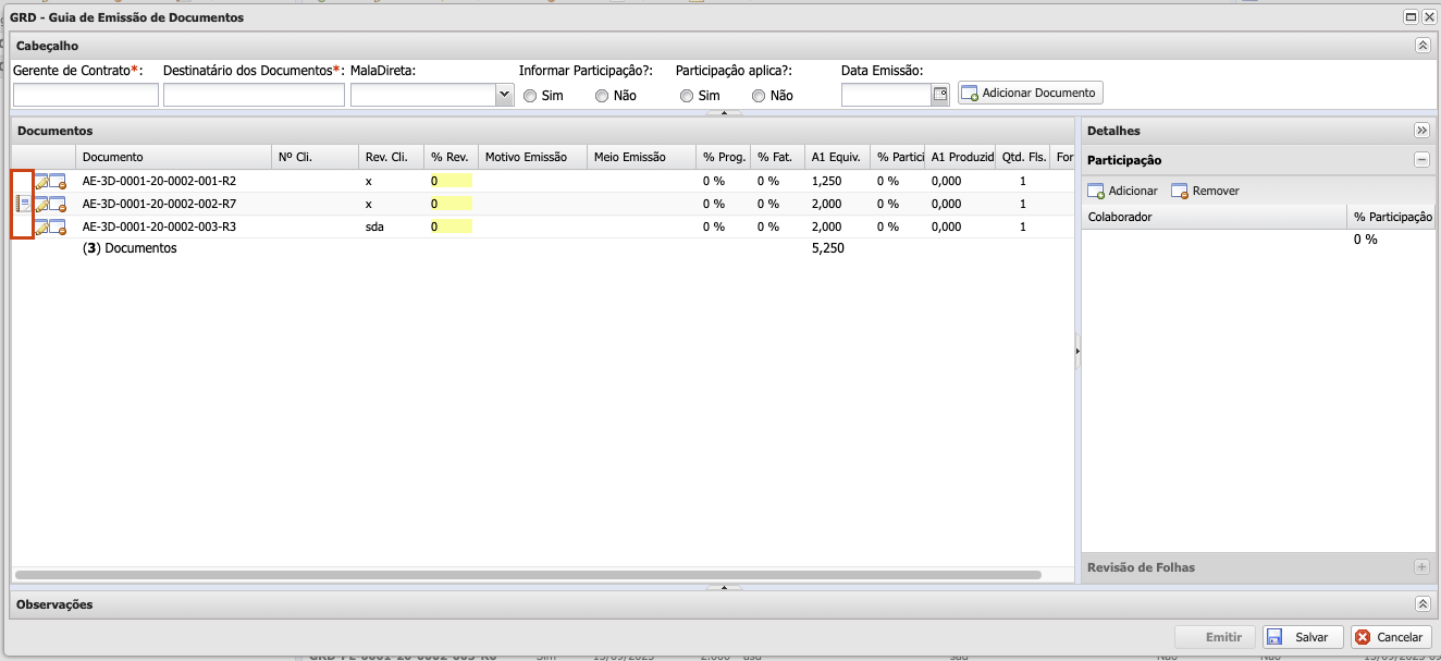 Emissão de Documentos (GRD - Guia de Remessa de Documentos)