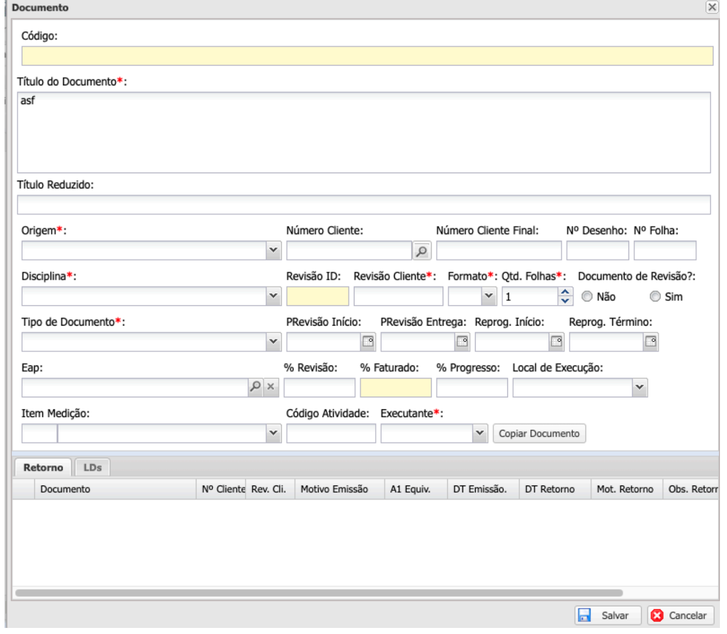 Assim que clicar no botão Salvar, será gerado uma nova LD que poderá receber os documentos. O código