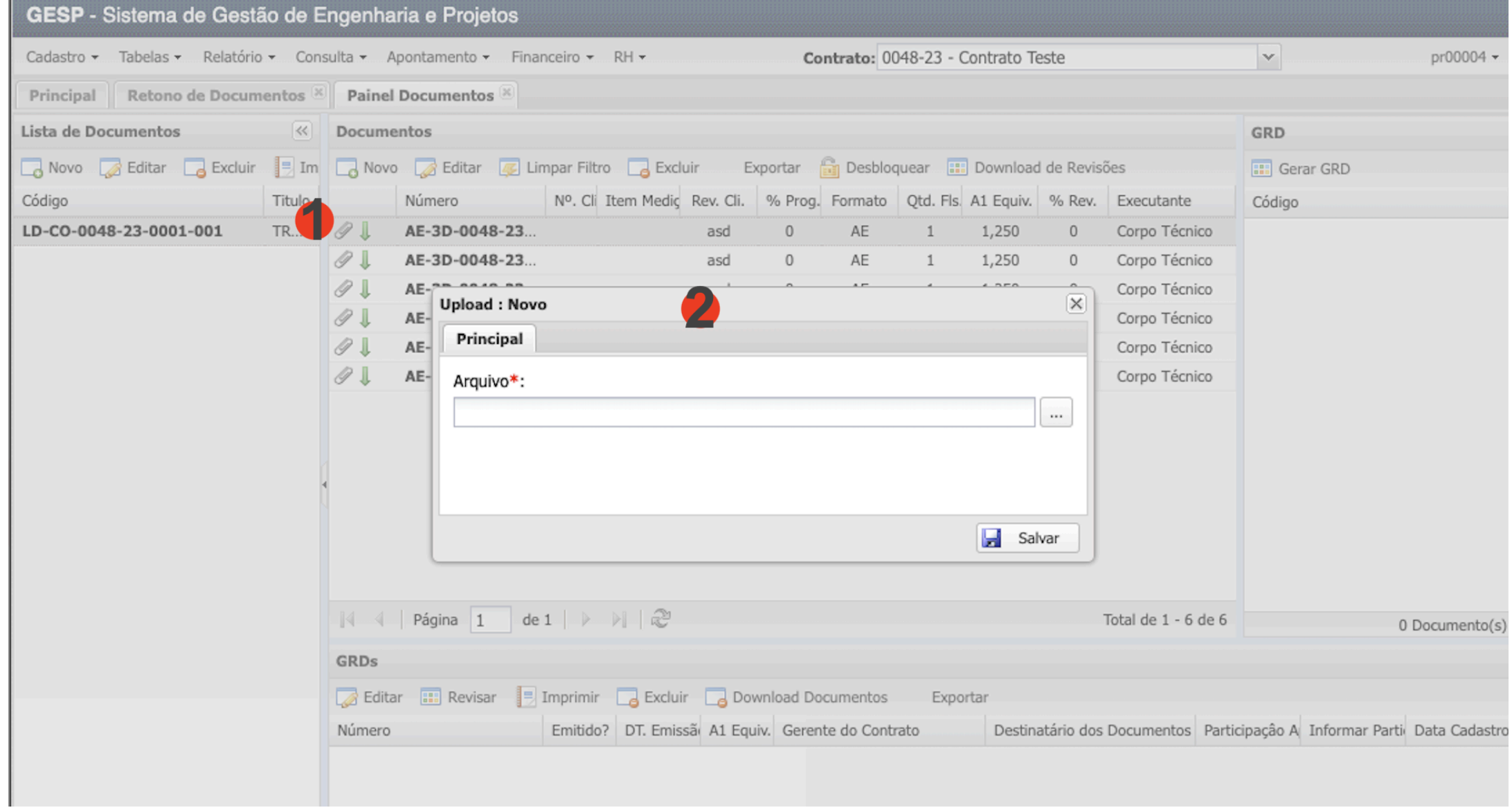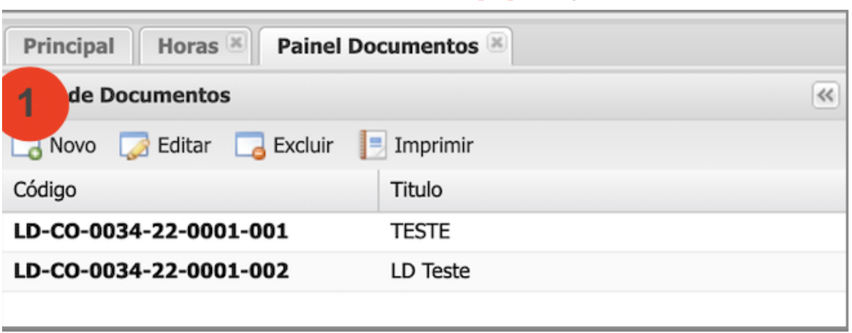 contendo uma área de Lista de Documentos, nesta área (1) clique em Novo